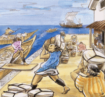 「やぶ梅」は、果肉が薄く小粒でしたが、農民の生活には大切な品でした。果肉をこめかみに貼り頭痛を治したり、握り飯に入れたり、その価値は大きいものでした。やがて紀州梅干は、「紀伊田辺産」の焼印を押した樽に詰め、江戸へ送られ人気が出て有名になりました。