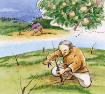 小山貞一は、農業経営の成功を夢見る青年でした。昭和6年のある日、高田貞楠から門外不出の高田梅の穂木60本を譲り受けました。接木(つぎき)をしても半分も育たないという苦労を克服して栽培を続け、梅畑を広げていきました。