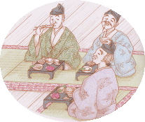 武家社会のもてなしは「椀飯」(おうばん)と呼ばれ、クラゲ、打ちアワビなどに、梅干や酢・塩が添えられたご馳走でした。