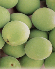 花は白色一重で開花期はやや遅く、収穫期は6月上旬から始まります。果実の大きさは、25〜30gぐらい。果実の色は緑色で、果肉は厚く種子は小さく、耐病性があり、青梅としては一級品です。和歌山県下でも多く栽培されている品種で、梅酒やジュース用に適しています。